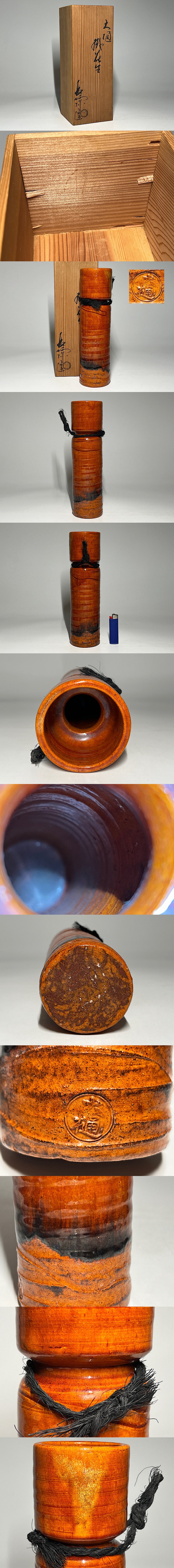 - 【瑞】大樋長阿弥作 大樋焼 飴釉 掛花入 共箱