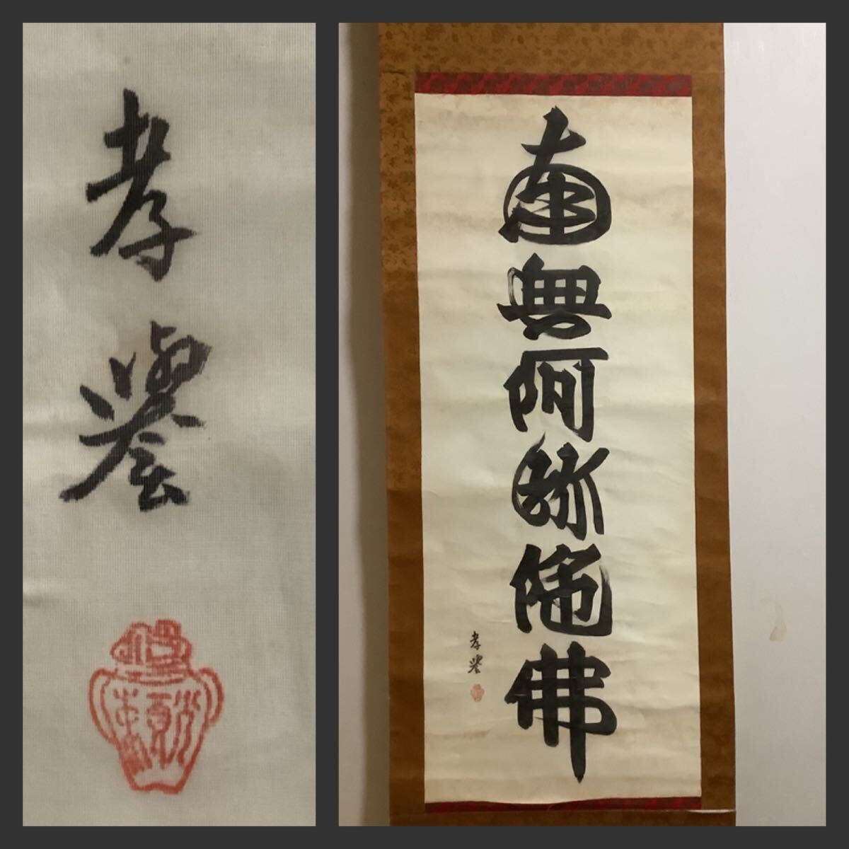 - 【模写】掛軸Oct751B[山下現有 六字名号]絹本 書いたもの/仏画 仏教美術 浄土宗管長 知恩院門跡 孝誉上人 南無阿弥陀仏 京都