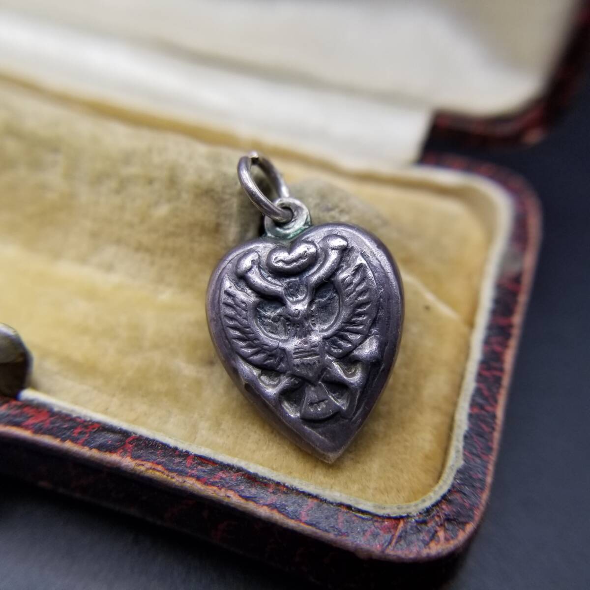 - 鷲紋章 ヴィンテージ パフィーハート チャーム ペンダントヘッド シルバートーン レトロ Y25-C②