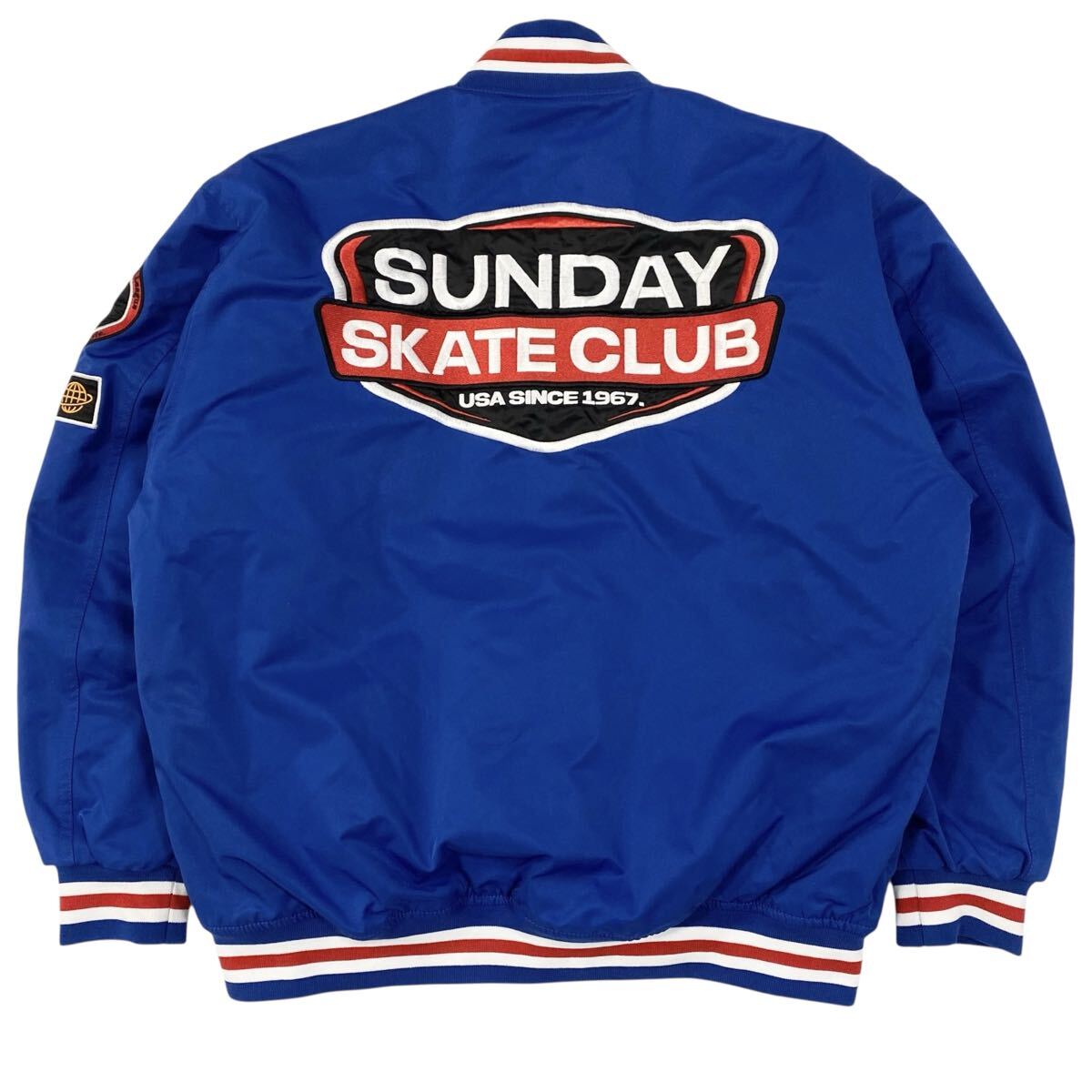 > 良品 WEGO(ウィゴー)パデッドワッペンスタジャン 中綿入り ブルゾン メンズM ブルー系 Sunday Skate Club