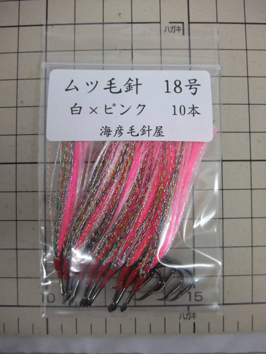 - 18SxP ムツ18号毛針 フラッシャー2色(白ケイムラ×ピンク) 10本セット