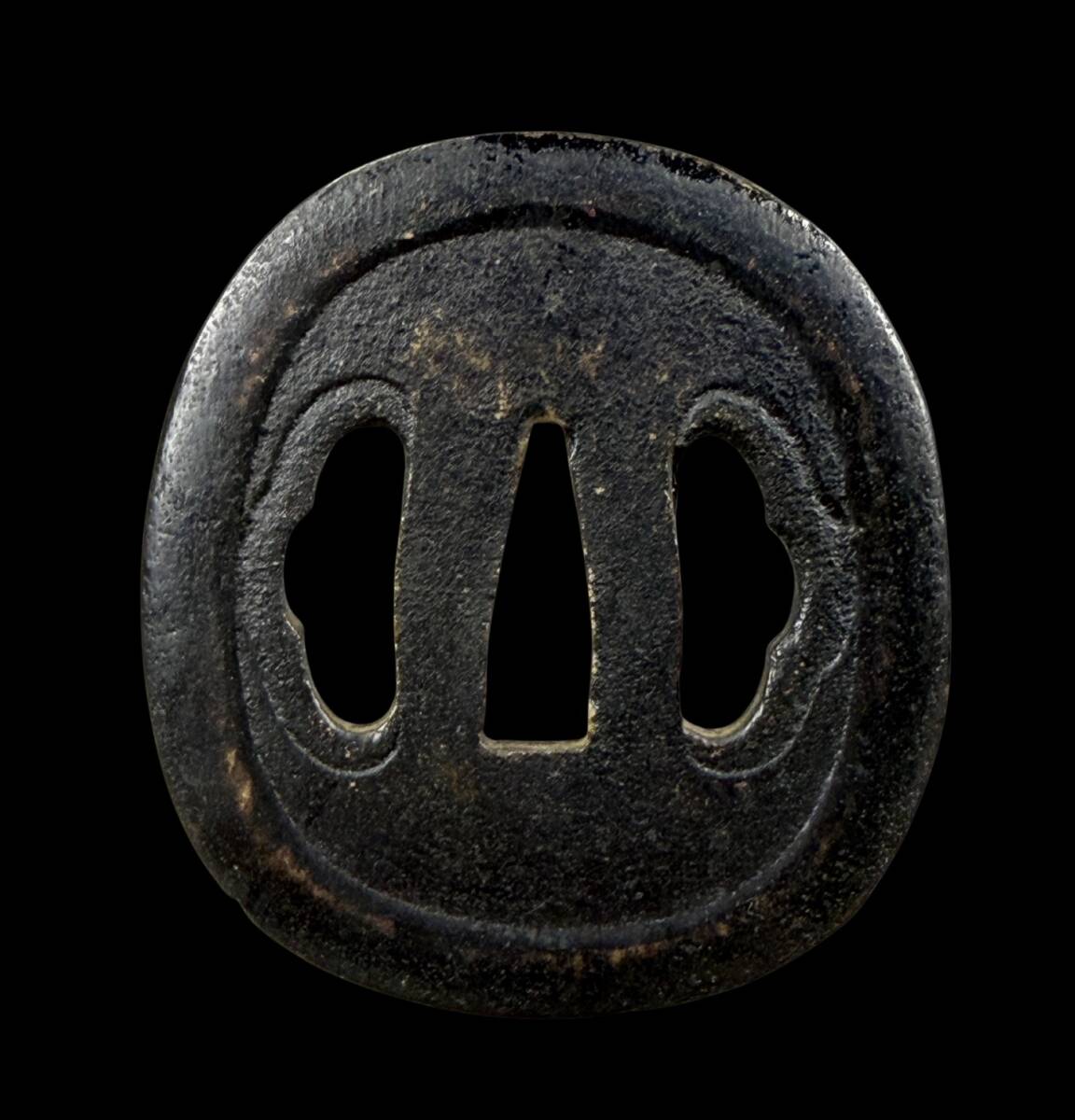 > 【偲】江戸時代 鉄地鐔 細工 鍔 つば 居合用 日本刀装具 直径約7cm 重さ約135.38g r-983