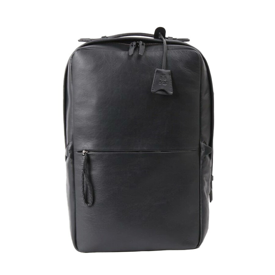 P.I.D ピーアイディー PAZ102 どんなスタイルにも合わせやすい 大人のオールレザーバッグパックハンドルは持ち手の長さを5段階まで調節することが出来ます。手持ち・肩掛けそれぞれに合った長さにすることでご自身のライフスタイルに合わせた使い方が可能となっています。バックルは深い色のレザーとのアクセントになるよう光沢のある素材を採用。シンプルな見た目の中にも遊び心のあるデザインが魅力の商品です。ウォータープルーフ加工を加えたスムースレザーを使用。中身を開くと3つ収納があり、PC、書類などの小分けができる構造。中央には飛び出し防止ボタン付きのクッション付きポケットを搭載。ウレタンで覆われいるのでPCやタブレットなど大事なものを収納するのに最適。側面に沿った大きなファスナーポケット、ペン挿し、マチ付きポケット、小型のファスナーポケットと小物を分けて収納するのに便利なポケットが多数搭載されています。更にPIDではおなじみのイヤホンや充電器などのコードを巻きつける為のリールや付属でキーストラップも搭載。シンプルで遊び心あるデザインだけでなく、いくつもの細かな機能が詰め込まれたバッグパックとなっています。