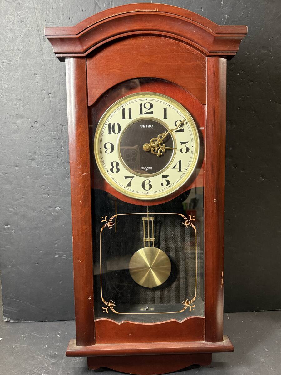 - ★コレクター必見 SEIKO PQ819B セイコー 木製 掛け時計 柱時計 動作品 振り子 チャイム付 インテリア オブジェ コレクション GT890