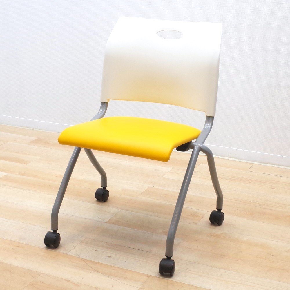 - ミーティングチェア イエロー ネスティングチェア 肘無 会議椅子 セミナー キャスター YH14979 中古 オフィスチェア