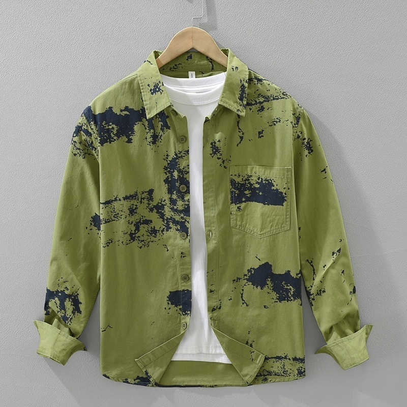 - 長袖シャツ シャツ 新品★メンズファッション 春秋服 トップス カジュアルシャツ 不規則柄 シンプル【M7692】緑色 L