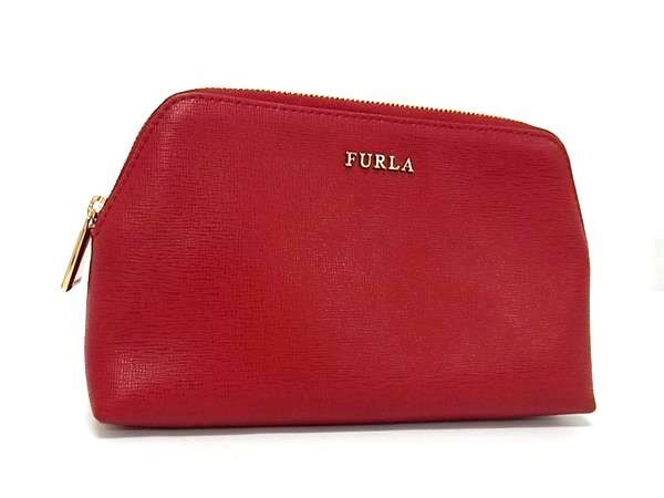 > ■美品■ FURLA フルラ レザー マルチポーチ マルチケース 小物入れ メイクポーチ レディース レッド系 DF8295