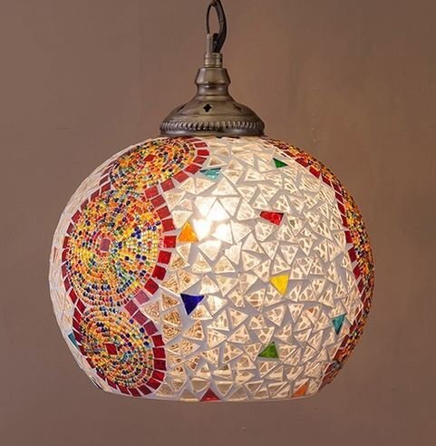カラフルなモザイクガラス風の楽しいペンダントランプです。
