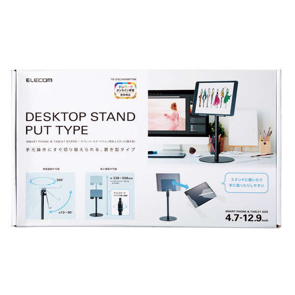 - タブレットスタンド プットタイプ 高さ調節可能で目線の高さに端末を設置でき、手元操作にすぐ切り替えることが可能: TB-DSCHARMPTBK