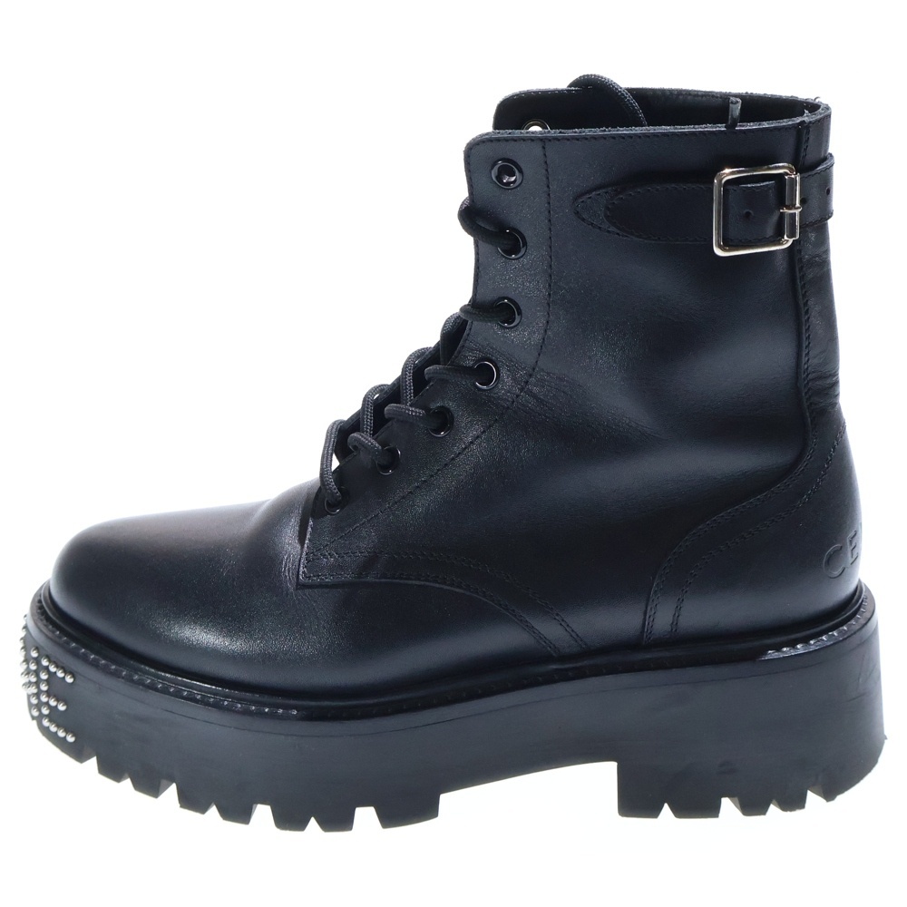 - CELINE セリーヌ BULKY バルキー スタッズロゴ レザー レースアップ ハイカットシューズ ショートブーツ ブラック 345983579C.38NO