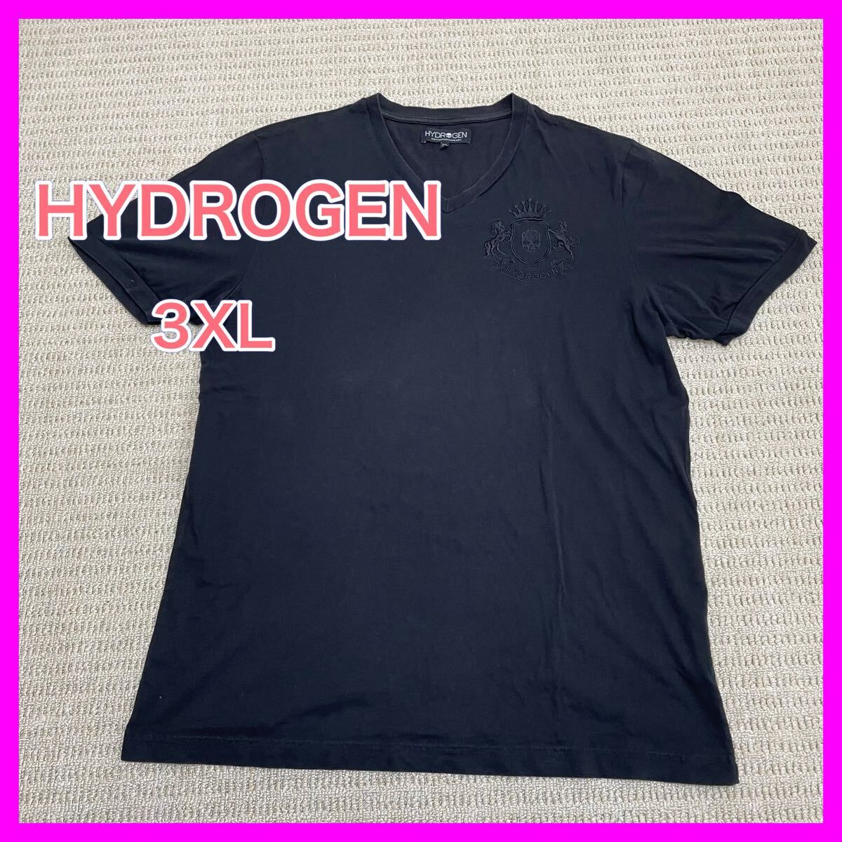 - 【3XL】ハイドロゲン 半袖 Tシャツ 黒 刺繍 Vネック
