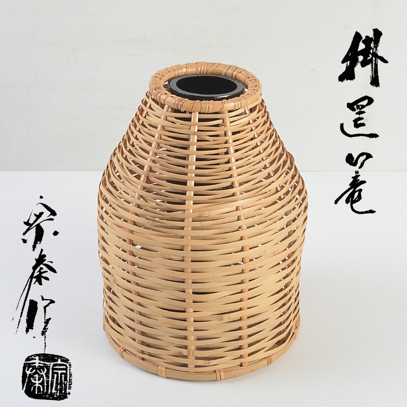 - 茶道具 竹工師 海野宗泰作 掛置竹篭 花生 共布 立花大亀極め箱 MAKB