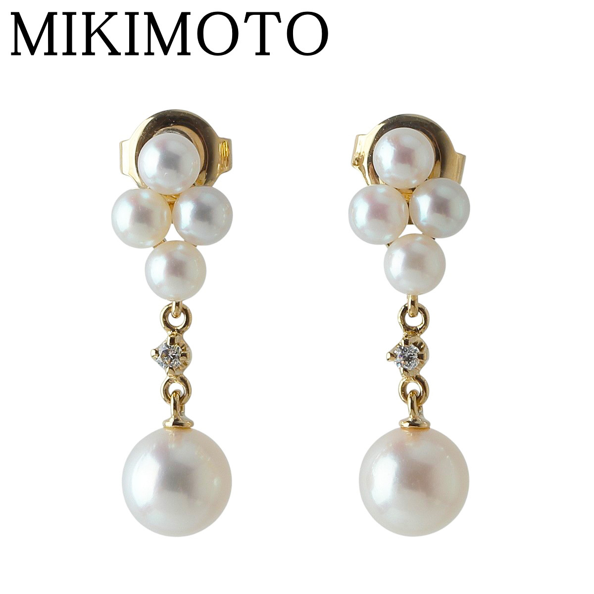 > ミキモト ベビーパール ダイヤ ピアス 現行モデル PE-768PK型 アコヤパール3.5mm~6.7mm K18YG 新品仕上げ済【23839】