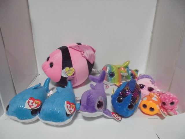 > Tyビーニーブーズ Tyボールズ 海の生き物 ジンベイザメ イルカ 一角獣 亀 タコ 他 タグ付き キーホルダータイプ