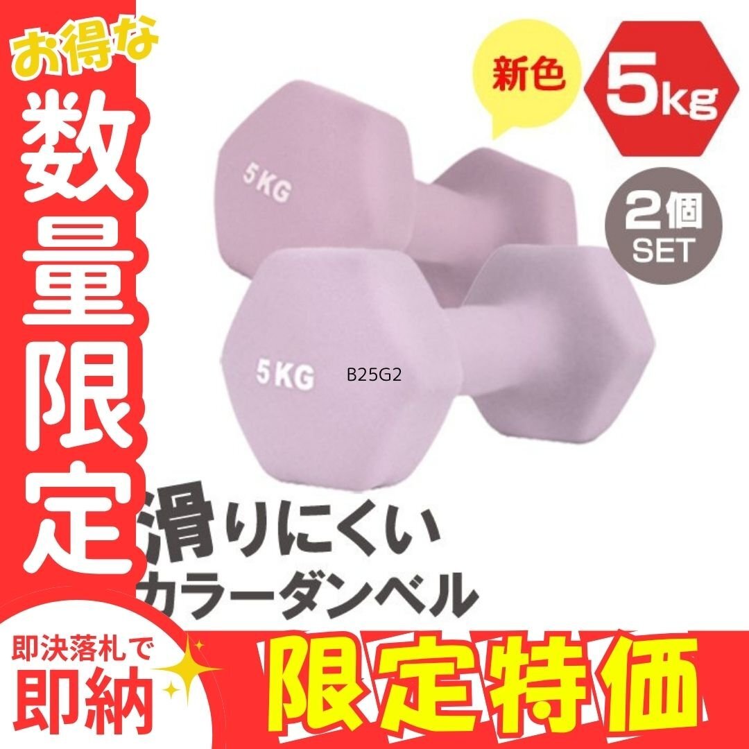 - 限定セール【2個セット/ライラック】滑りにくい カラー ダンベル 5kg 筋トレ エクササイズ 宅トレ ウエイトトレーニング ダイエット