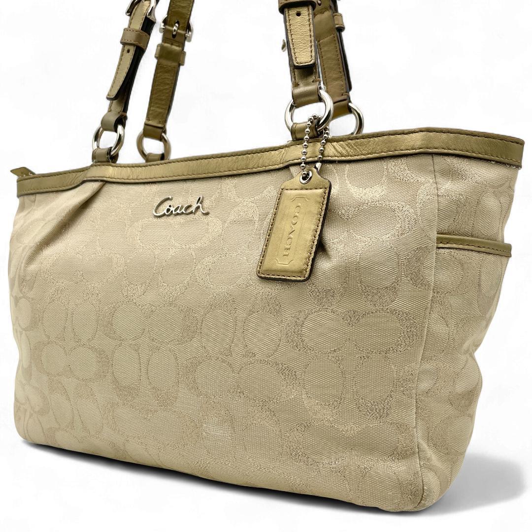 - 良品 COACH トートバッグ トートバッグ ベージュ シグネチャー 肩掛け