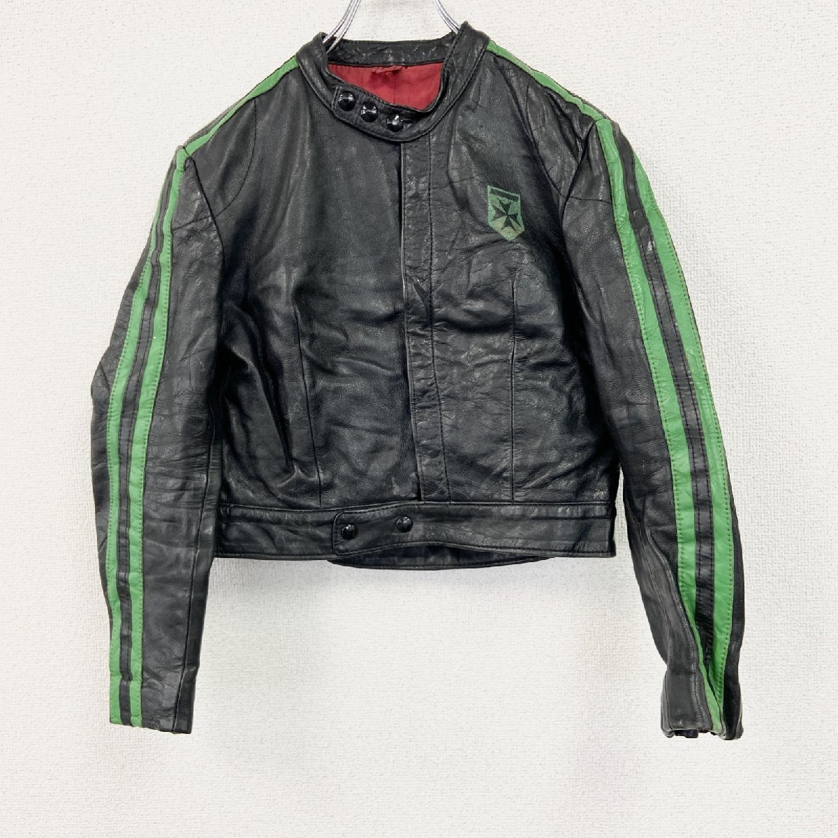 - 古着 used HARRO レザージャケット シングルライダースジャケット 2ストライプス 黒 ブラック
