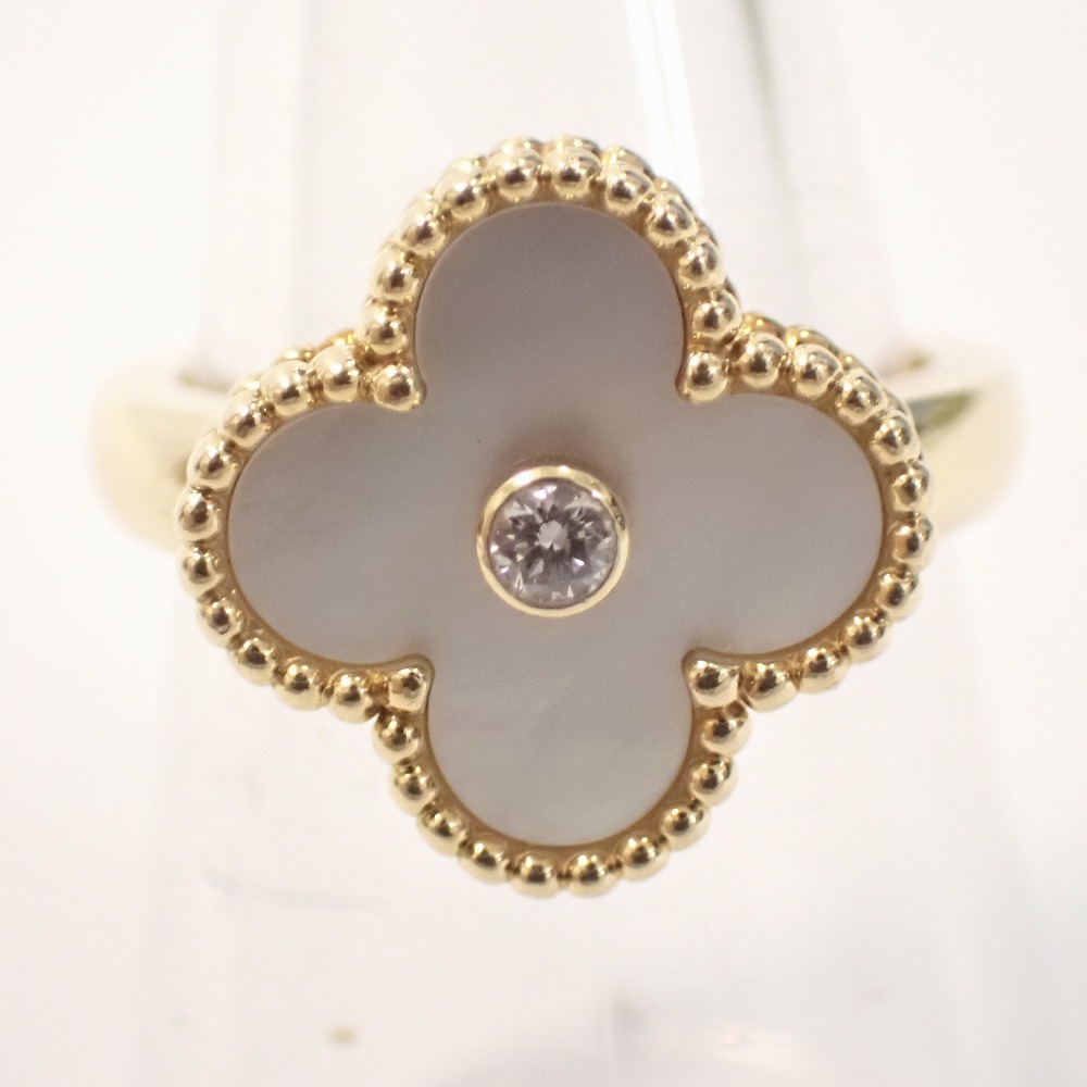 > Th999833 ヴァンクリーフ&アーペル ヴィンテージアルハンブラ リング ホワイトシェル K18YG 1Pダイヤモンド Van Cleef & Arpels 中古