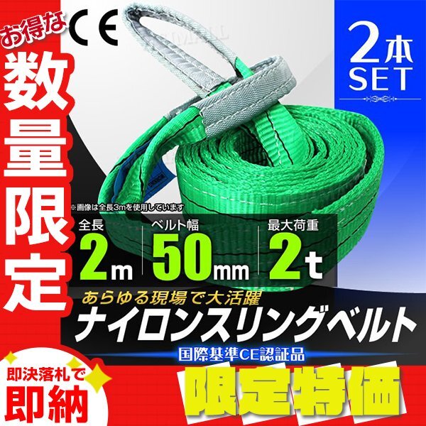 - 【限定セール】スリングベルト 2m 2本 CE認証品 ナイロン スリング 耐荷2000kg 50mm×2m ベルトスリング 吊りベルト 荷吊りベルト