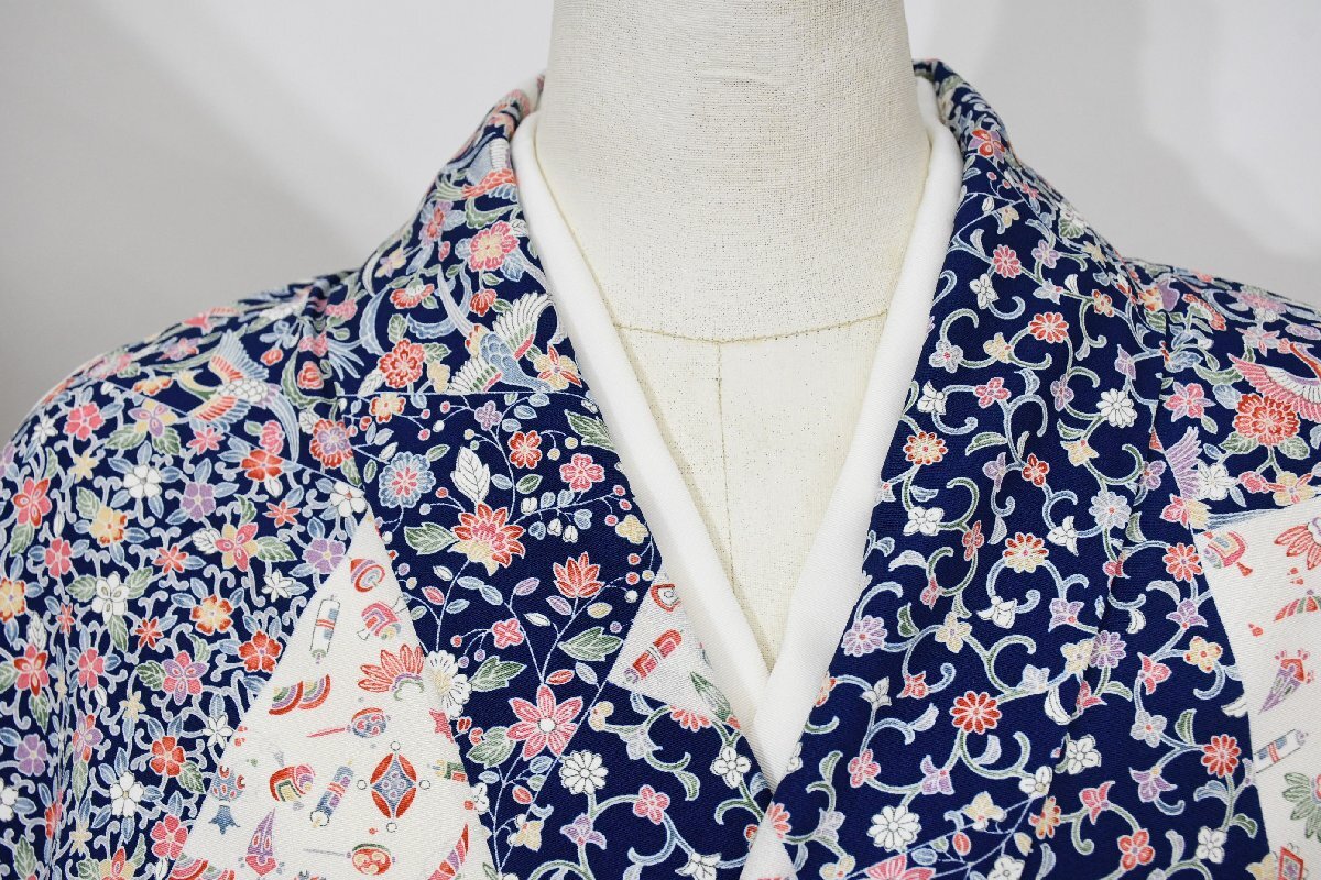 - 小紋 着物 袷 七宝文 唐花 身丈158cm 裄丈65.5cm ★ kb-7284 桜庭呉服店