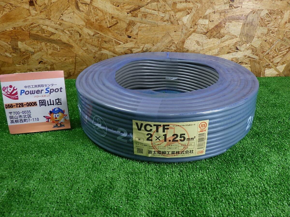 - 2025年8月製造★富士電線 VCTF ケーブル 2×1.25 100m 灰 ビニルキャブタイヤ丸形コード 多少の傷や汚れあり 未使用品 251023