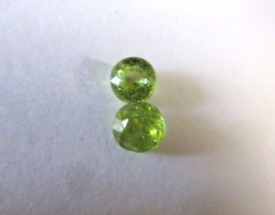 イエローグリーンのスフェーンの1ペアです。赤やグリーンのファイアーがキラキラしています。ファイアーの出方に少し差があります。透明感とテリがあります。非加熱。