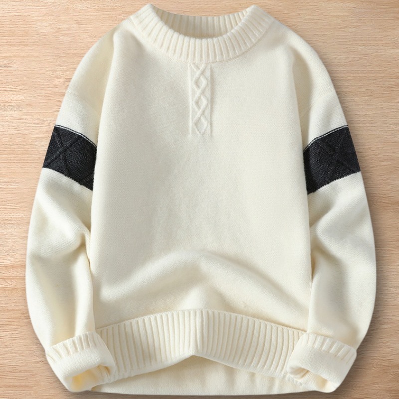 > Y277-XL ホワイト 新品DCKMANY セーター ウール混 無地ニット ラウンドネック 秋冬トップス 厚手 暖かい 長袖 日常 メンズ プルオーバー