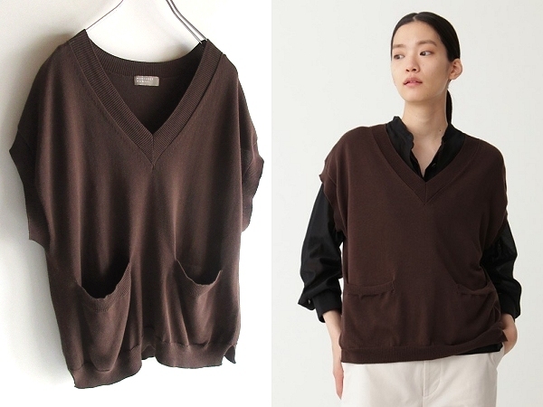 - MARGARET HOWELL マーガレットハウエル 2022AW LONG STAPLE COTTON コットンニットベスト 2 ブラウン 茶 日本製 定価30800円 MHL.