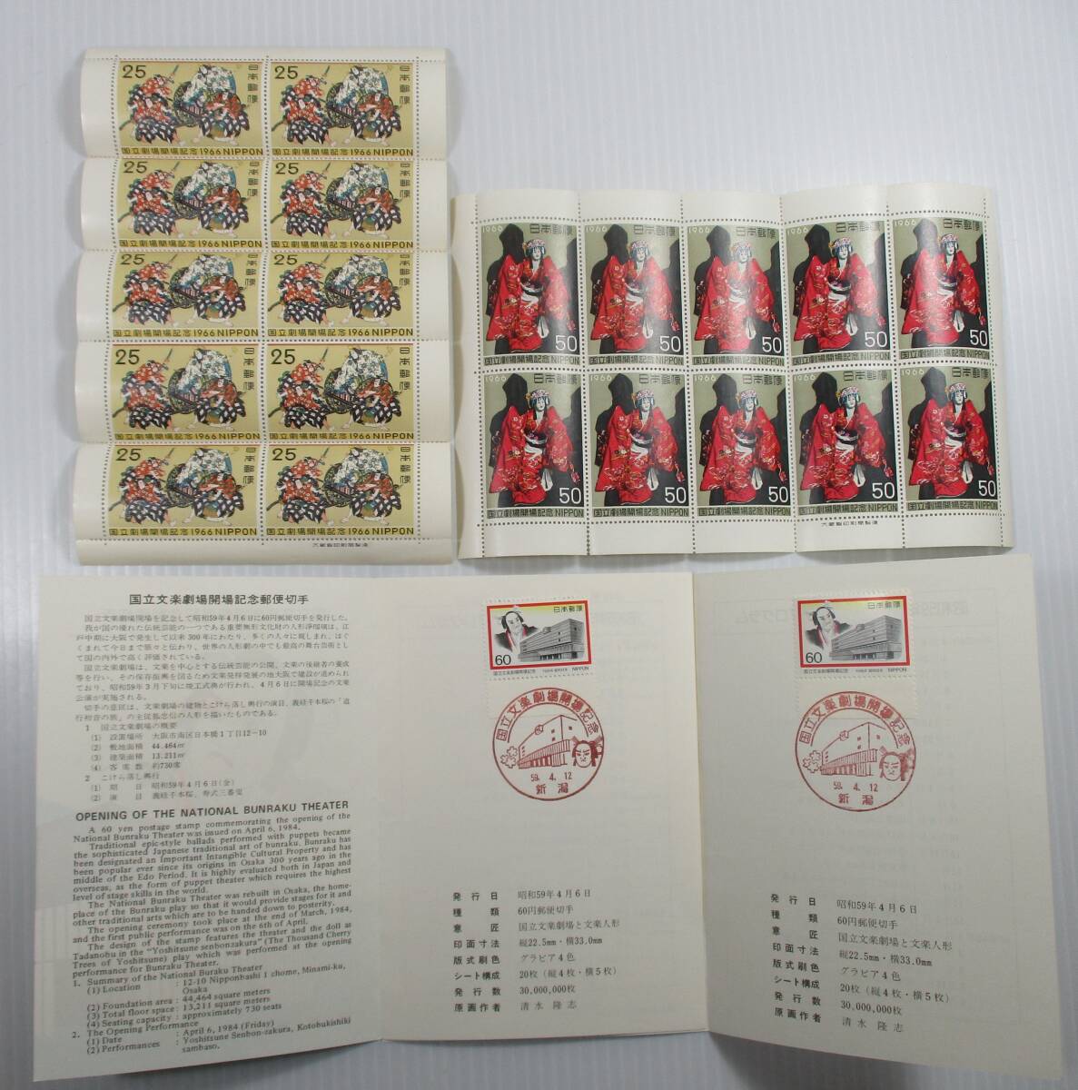 - K-912 国立文学劇場開場記念郵便切手 初日カバー×2 国立劇場開場記念切手シート 歌舞伎(50円×10枚) 文楽(25円×10枚)合計4シート
