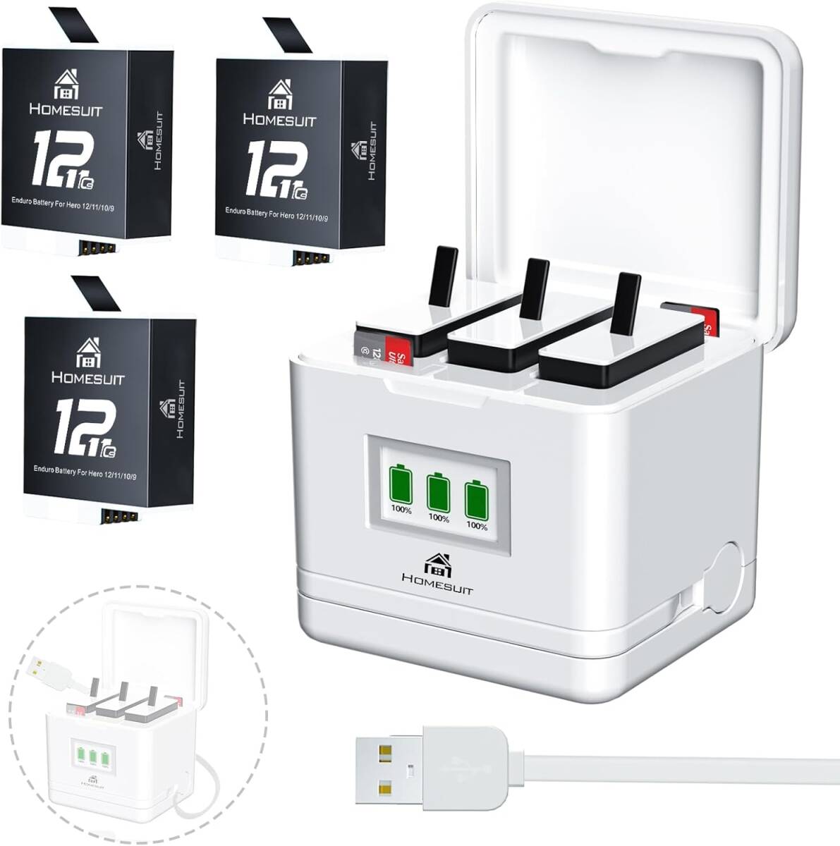 - Homesuit 寒冷地 Gopro Hero12/11/10/9 Enduro 対応バッテリー 3個1800mAh 低温環境下対応 12/11/10/9充電器セット ケーブル一体型