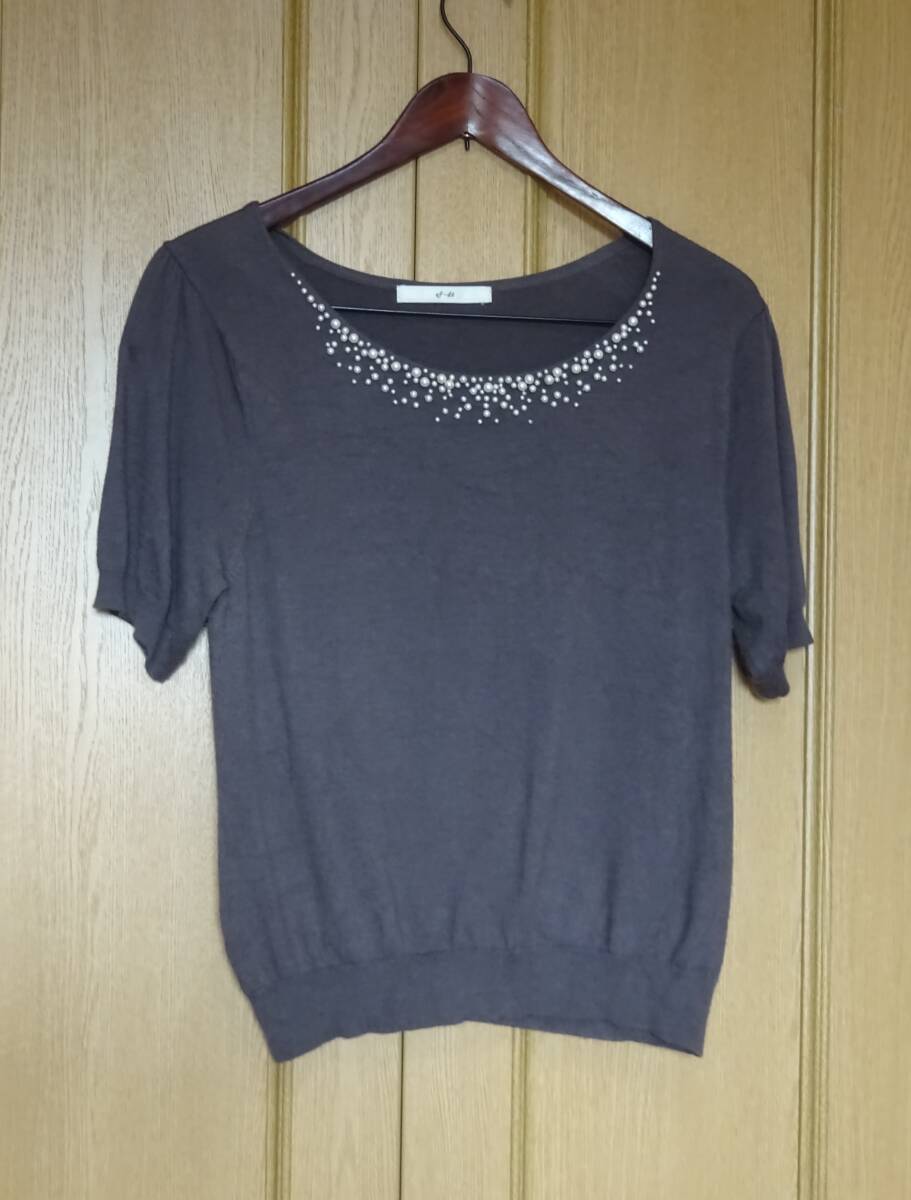 - エフデ 半袖ニット 15号 大きいサイズ モカ茶 ビジュー付き