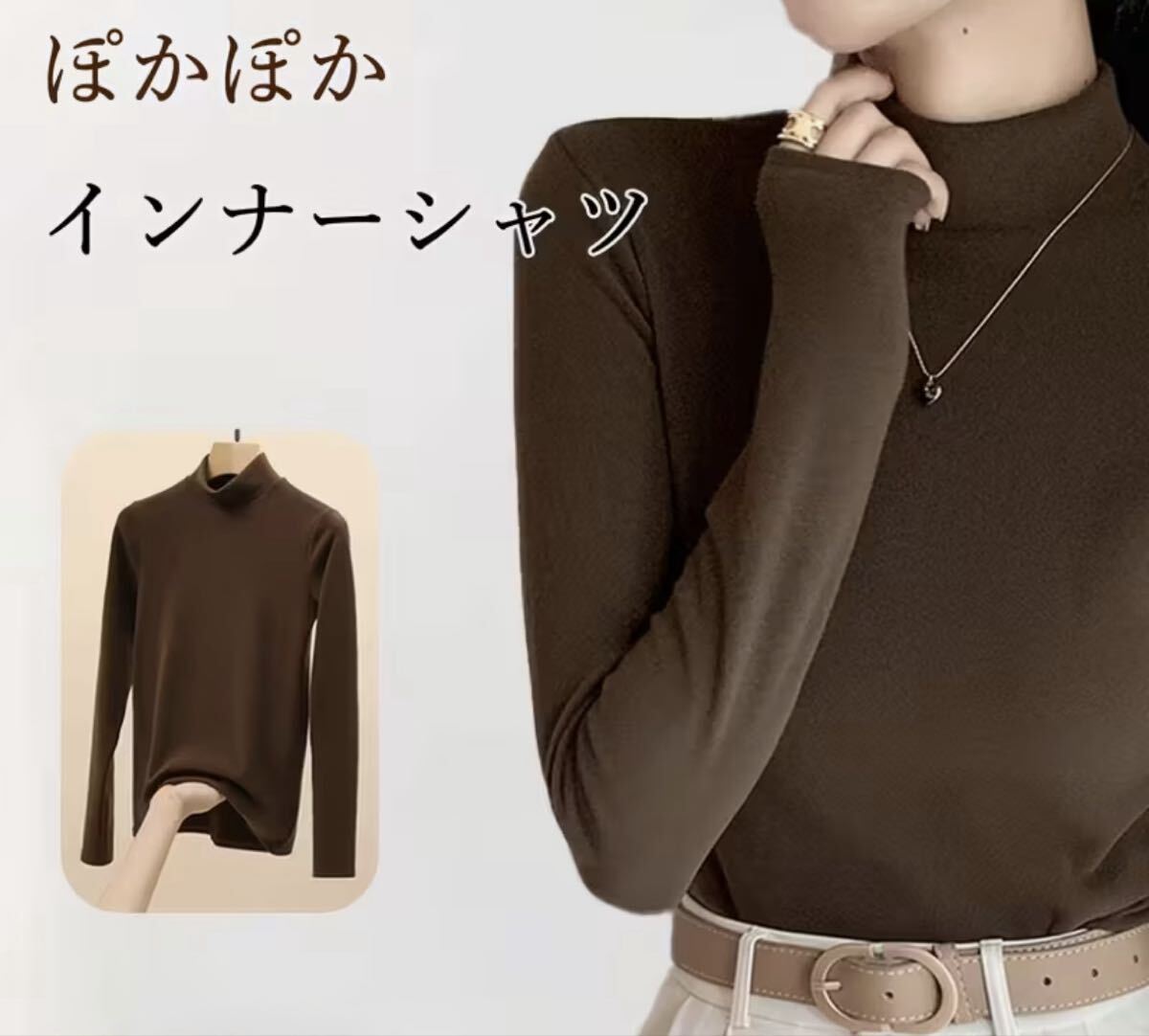- 長袖 カットソー ハイネック インナー ブラウン Lサイズ