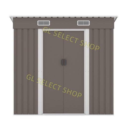- 【TYPE B ブラウン】物置 屋外 倉庫 戸外収納庫 防水/耐侯 収納可能 頑丈 大容量 スチール 引き戸 補強フレーム付き 換気口付き 床なし