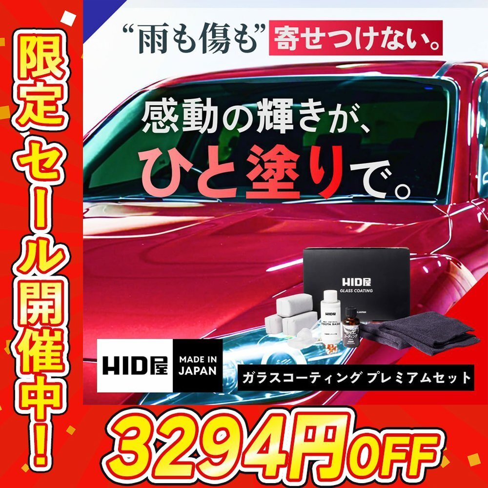 - 【3294円OFFセール】ガラスコーティング【送料無料】HID屋 ボディへの傷や雨を防ぐ!光沢、撥水性、耐久性抜群/ヤリスなど