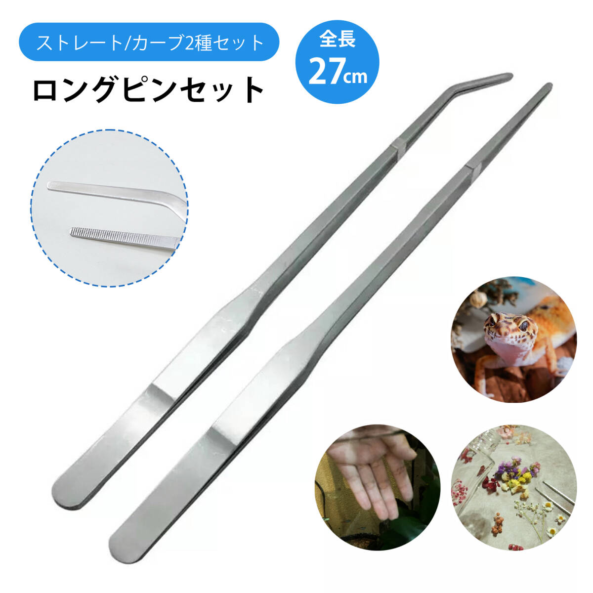 - ピンセット 長い 水槽 ピンセット 爬虫類 ピンセット 水草 ピンセット 27 cm 多機能(ストレートヘッド*1+エルボ*1);J2292;
