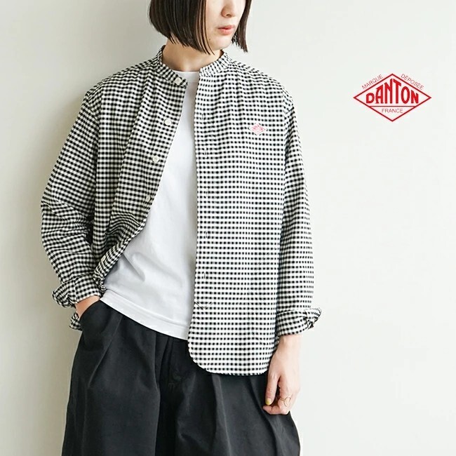 - DANTON ストライプ オックスフォード バンドカラーシャツ 36
