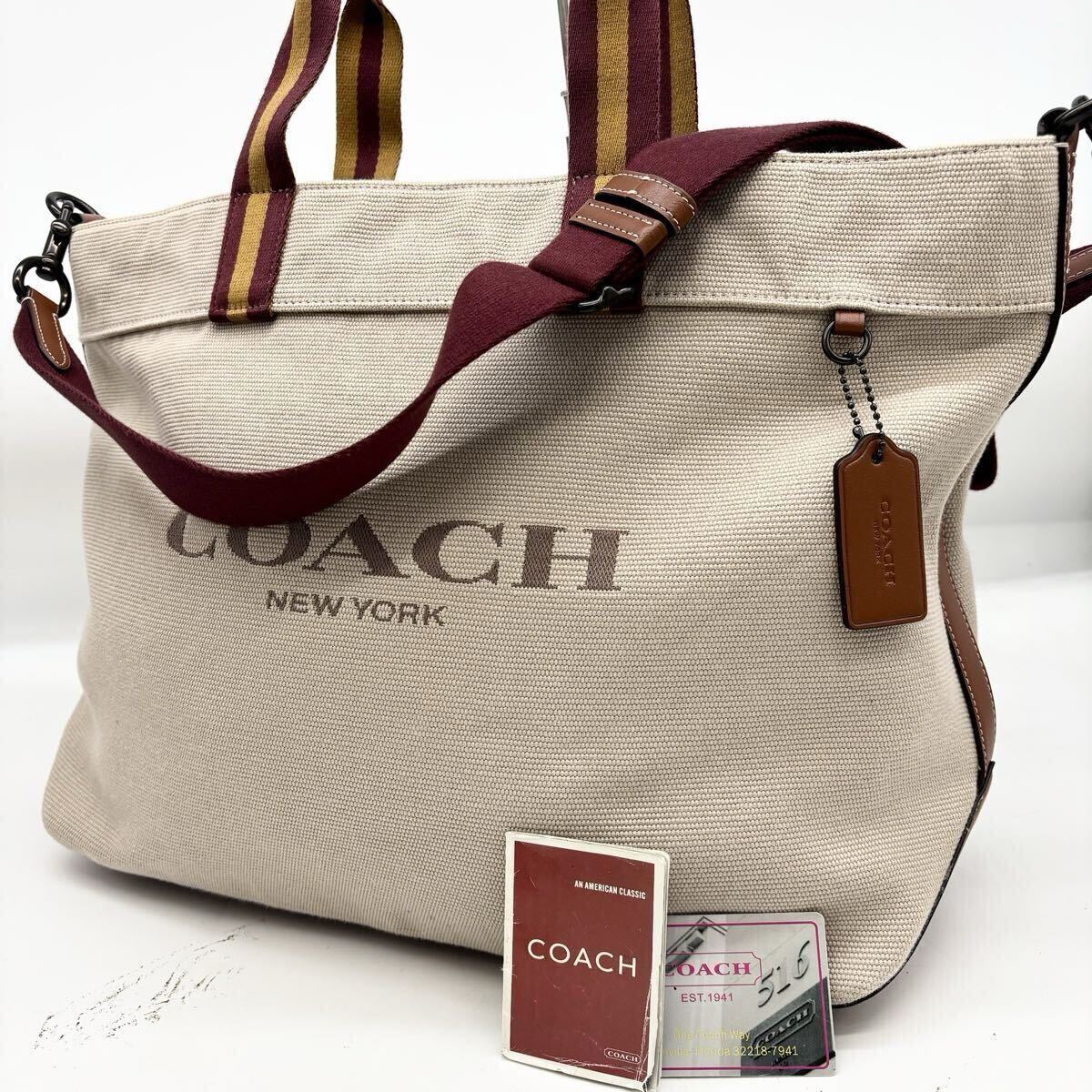 > 未使用級●大容量●希少モデル COACH コーチ 2way メンズ キャンバス トートバッグ ショルダー ビジネス 旅行 A4 レザー スエード ベージュ