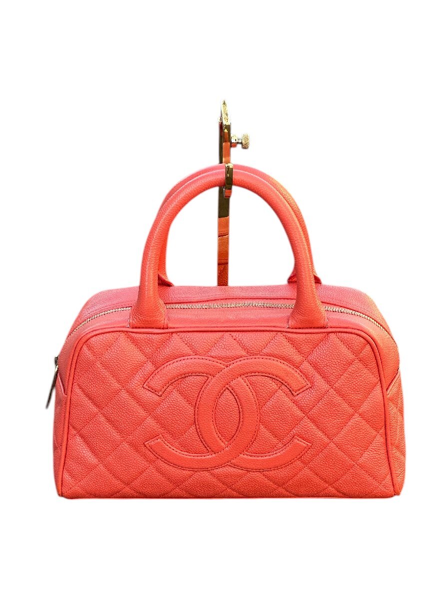 - 美品◆本物シャネルCHANELヴィンテージマトラッセキャビアスキンココマークCCゴールド金具Miniボウリングミニボストンバッグハンドバッグ