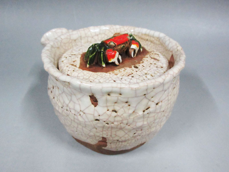 - ☆B68 美品 【天神蟹彫急須】 楽山焼 在銘 『玉井楽山』 細密彫刻 蟹 カニ 伊予 茶道具 煎茶道具 茶器 急須 茶注 水注 骨董品 アンティーク