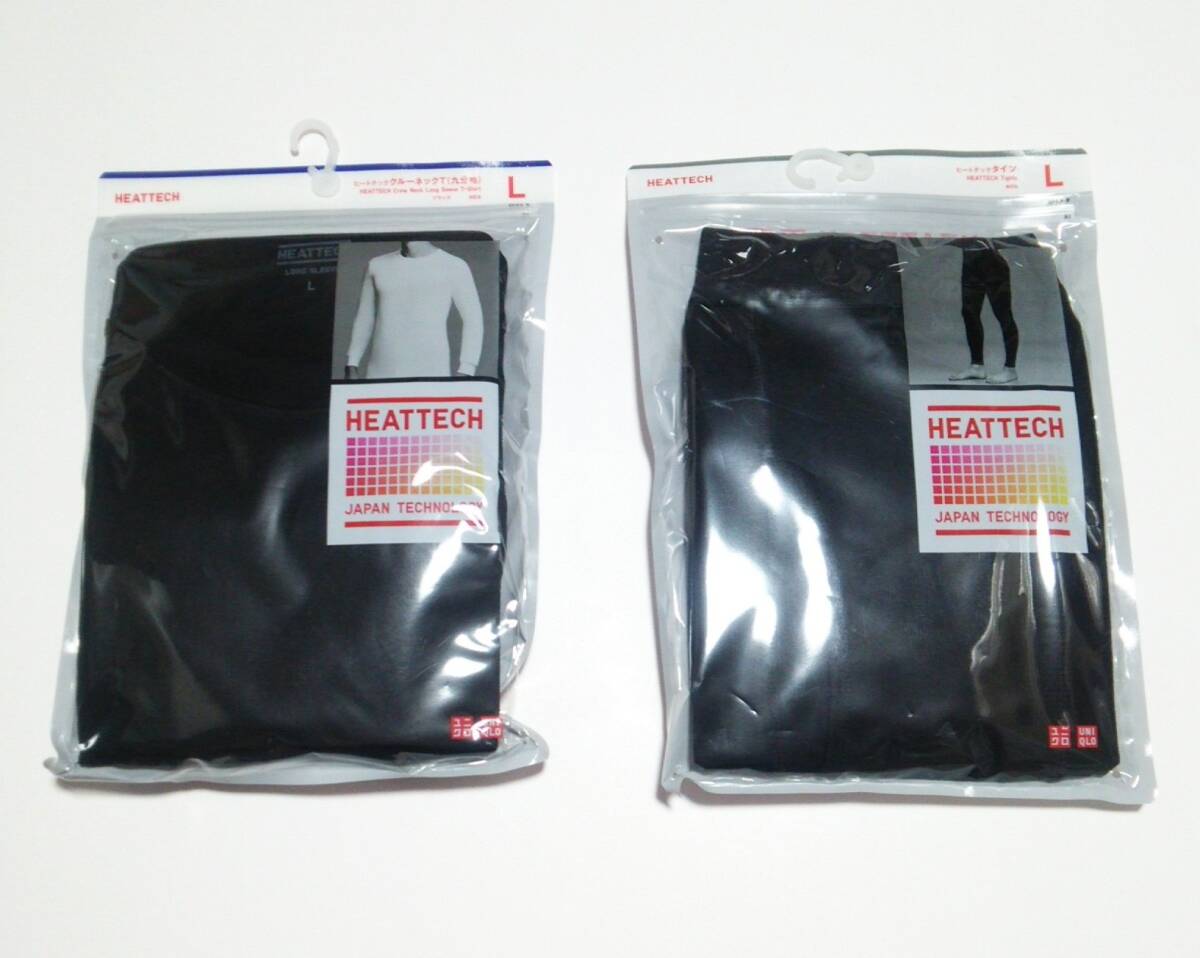 - 新品 UNIQLO ユニクロ 2025年秋冬購入 ★上下セットアップ★ ヒートテッククルーネックT/9分袖 ヒートテックタイツ/前開き 黒 メンズL