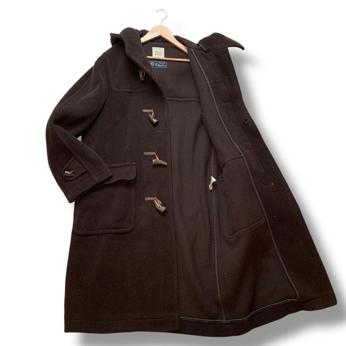 - 【美品】MEN'S BIGI メンズビギ ダッフルコート ロング アウター イタリア生地 バロムブローサ ウール 牛革 トグルボタン ブラウン Lサイズ