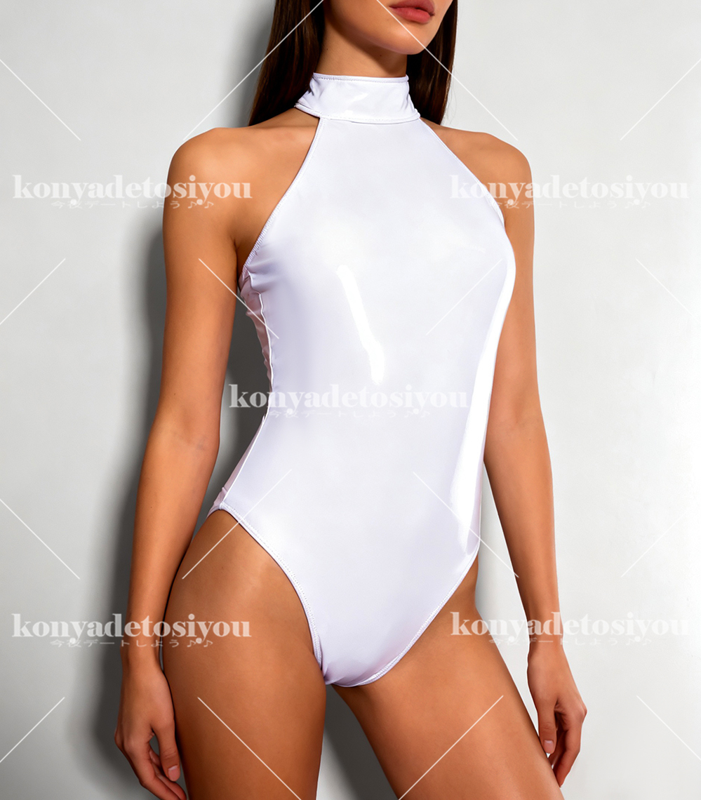 - 23047白3XL 超光沢 バックシャン ハイレグ 水着風レオタード コスプレ RQレースクイーン キャンギャル 仮装 撮影会 イベント コスチューム