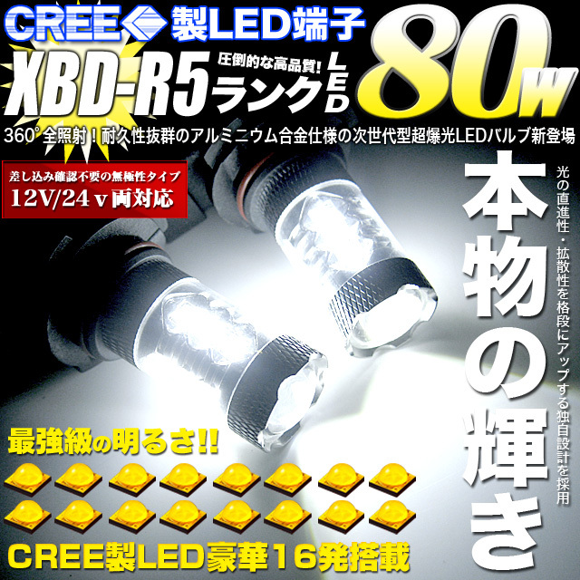 > 【H8 H11】 CREE製 XBD-R5 80W-LED 交換用 LED バルブ FJ3228-h8-wh