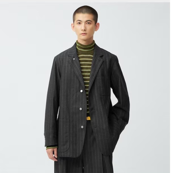 > ☆希少! GU beautiful people ストライプ カバーオール ジャケット ダークグレー XL テーラード 完売品!ビューティフルピープル ジーユー