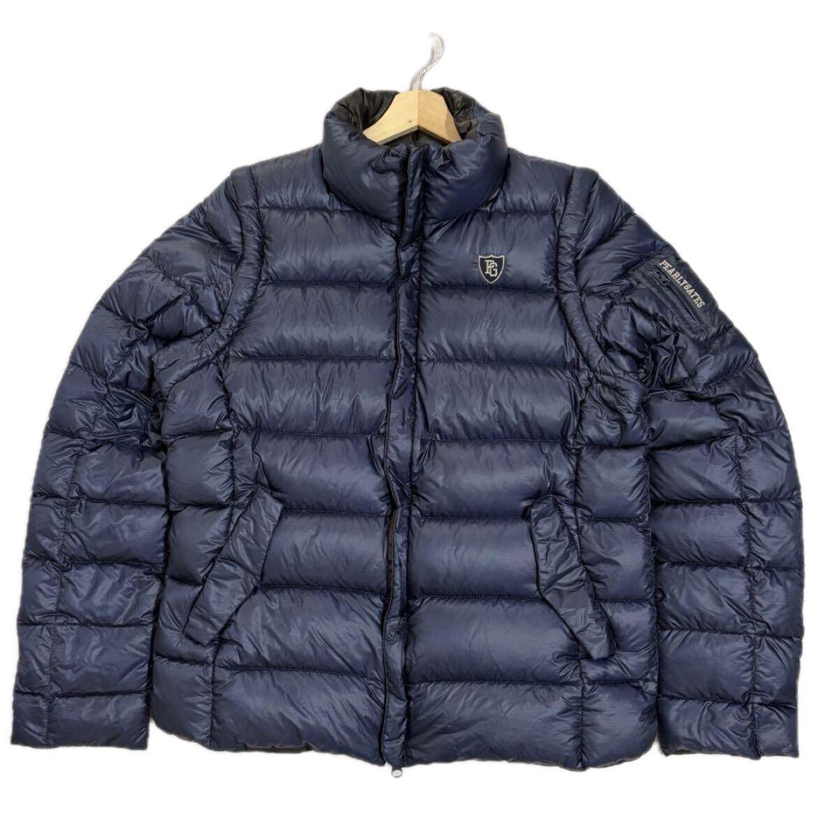 > 美品●サイズ5/パーリーゲイツ PEARLY GATES ダウン ジャケット ブルゾン 3way ベスト ロゴ ネイビー Lサイズ ゴルフウェア