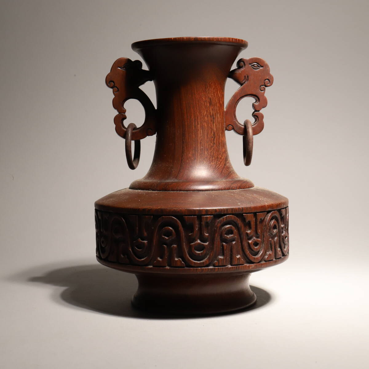 - 中国古玩 唐物 時代木彫 唐木造 遊環 花瓶 時代物