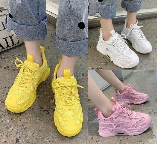 > 【高品質】全6色 スニーカー パンプス ハイキングシューズ 厚底 切り替え シンプル 35 オフホワイト