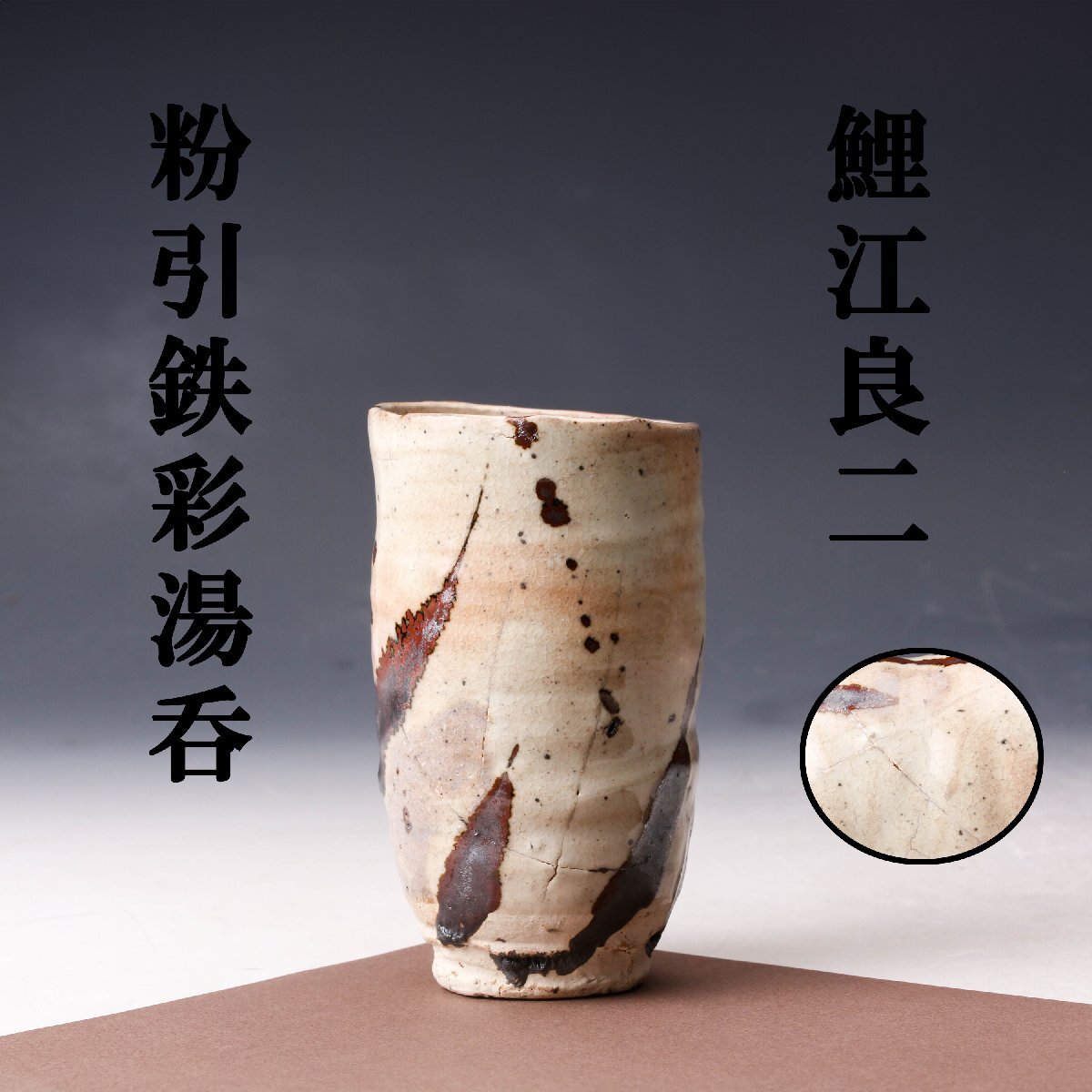 【佳香】鯉江良二 ゆらりと揺れる鉄彩の美 粉引鉄彩湯呑 本物保証