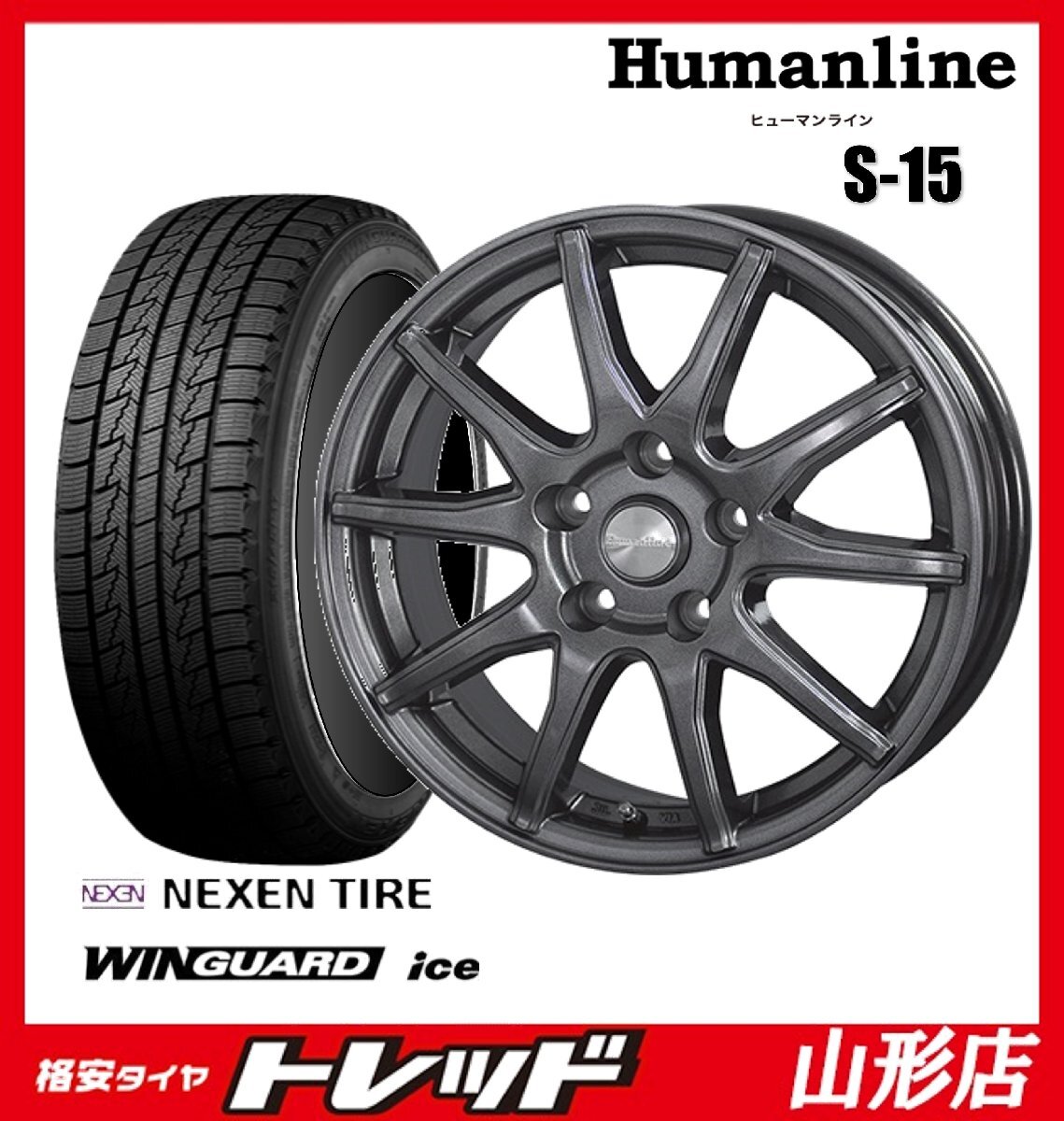 - 山形店 新品 冬タイヤホイールセット Humanline S-15 16インチ 6.5j 5H114.3 +48 GMBK ネクセン ウィンガードアイス 205/65R16 2024年製