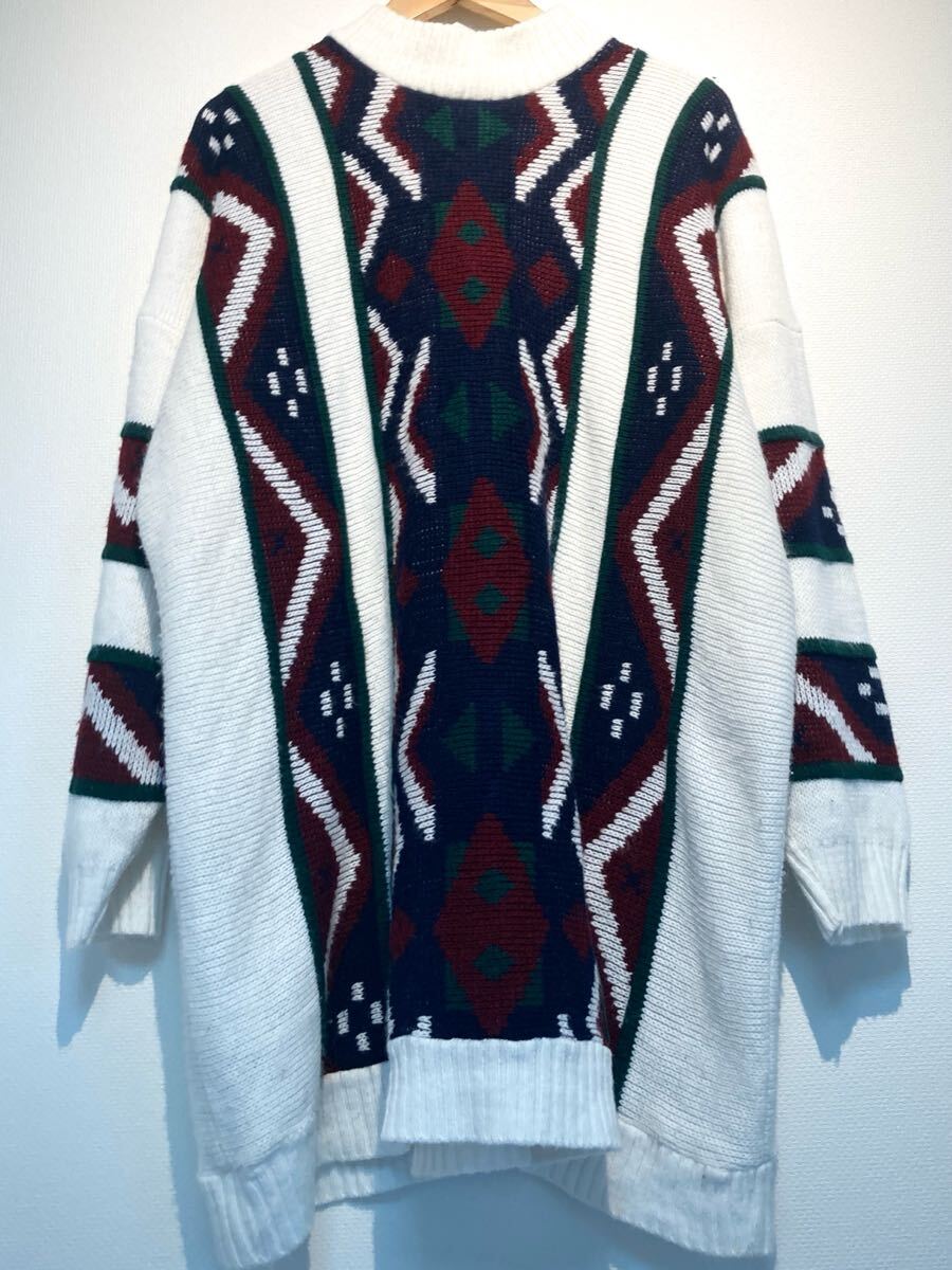 - PRIVATE EYES★90'sVINTAGE★ニット★セーター★総柄★ストライプ★モックネック★ロング丈★ビッグシルエット★USA製 ビンテージ 白赤紺緑